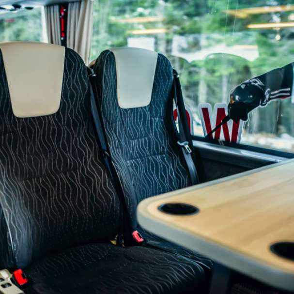 Fotele w naszych autokarach są niezwykle wygodne i funkcjonalne. Każdy fotel wyposażony jest w pasy bezpieczeństwa, lampkę do czytania, nawiew, rozkładany stolik do posiłków.