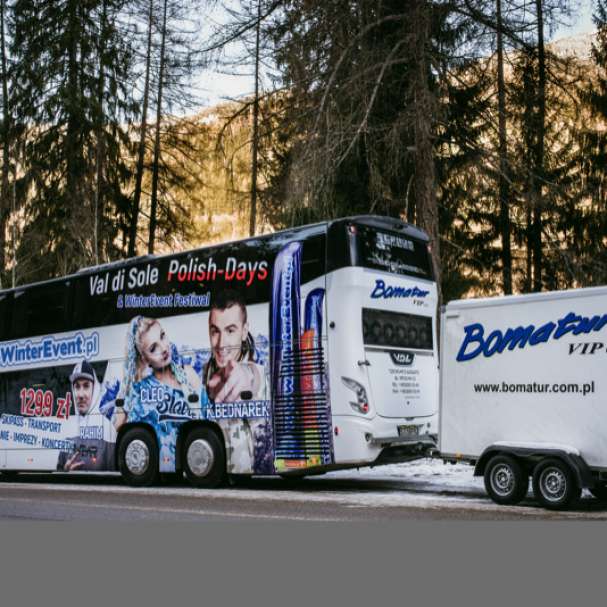 Klienci nasi jeżdżą najnowszymi i najlepszymi autokarami w Polsce klasy LUX i DE-LUX, SETRA 431 DT, 417HDH, 415HD, VOLVO 9700, Mercedes Tourismo, Man Lions, VDL, Scania Irizar. Dzięki naszemu strategicznemu partnerowi firmie Bomatur oraz Raftrans zdecydowana większość blisko 90% transferów obsługiwana jest przez autokary maksymalnie do 3 lat, a tylko w wyjątkowych sytuacjach korzystamy z autokarów do 8 lat. Wszystkie autokary spełniają niezwykle rygorystyczne normy bezpieczeństwa zgodne z przepisami obowiązującymi w Unii Europejskiej. Jednocześnie każdy z naszych autobusów posiada zezwolenie na poruszanie się z prędkością 100 km/h i odbywa regularne badania techniczne w autoryzowanych serwisach.