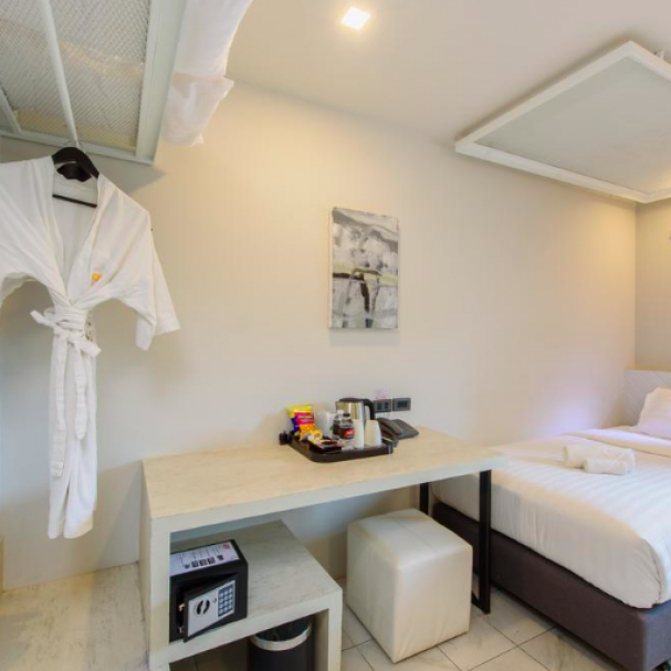 Klimatyzowane pokoje są stylowo urządzone przy pomocy ręcznie robionych dzieł sztuki. W każdym z nich jest łazienka. Pokoje zostały ponadto wyposażone w telewizję kablową i sejf. Do dyspozycji Gości jest w hotelu odkryty basen oraz bezprzewodowy dostęp do Internetu.